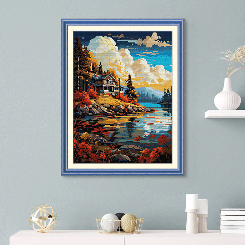 【Stamped kits or Counted kits】This is a 11CT stamped kit,the 11CT means there are 11 grids in one inch fabric,the stamped kit means the pattern has been printed on the fabric ,it is printed canvas and the pattern will be disappear after touch water.So after finishing stitching, put the fabric in water for half an hour, then make it dry, and then you can make a frame for it.