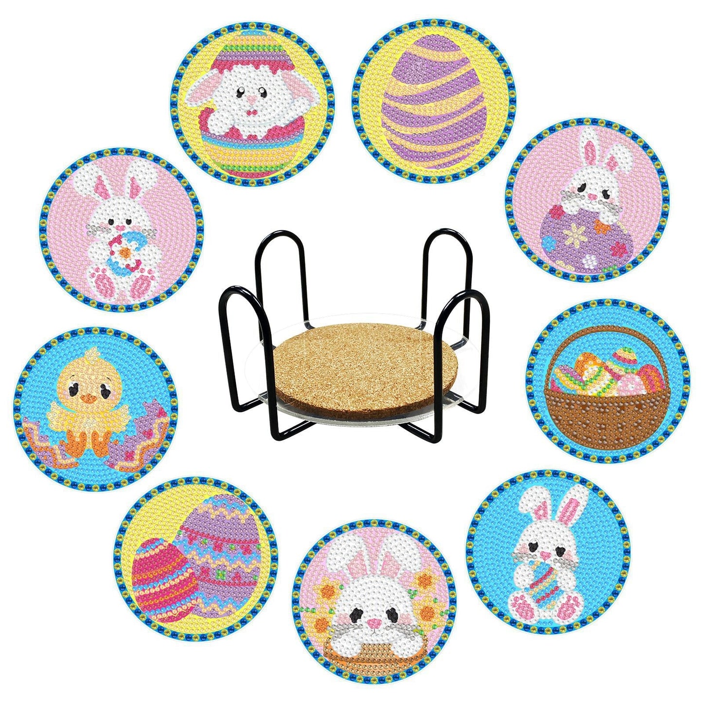9 Pcs Diamond Painting Coasters with Holder